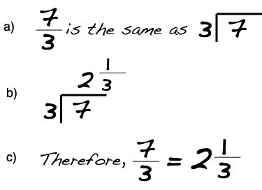 - Here is a reminder for changing improper fractions into mixed fractions:
